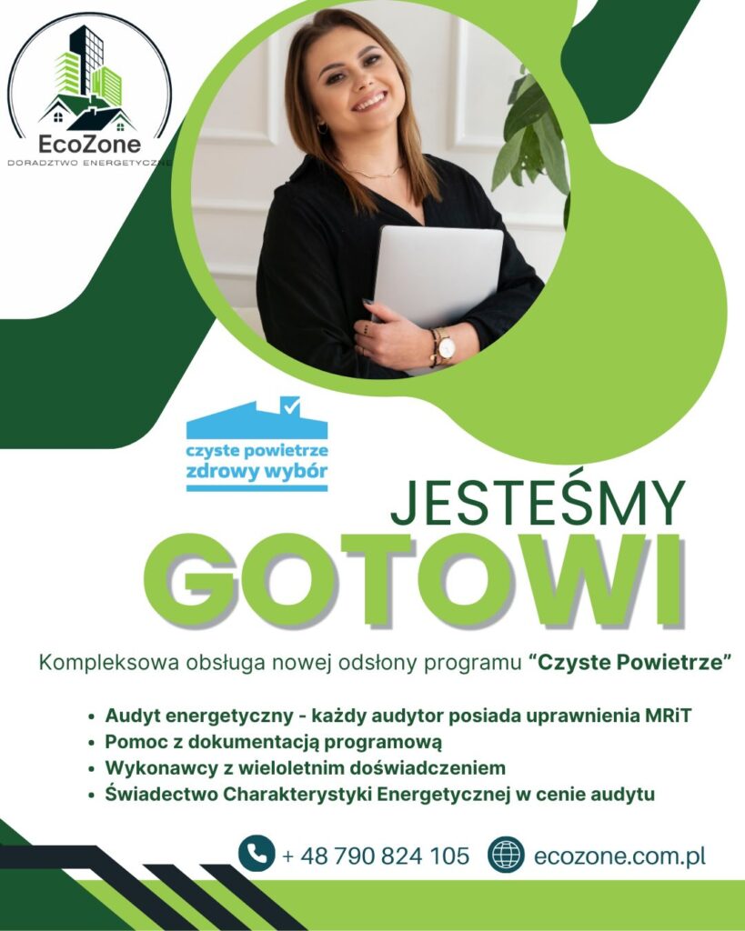 Oferujemy kompleksowe usługi z zakresu efektywności energetycznej budynków – wykonujemy profesjonalne audyty energetyczne, świadectwa charakterystyki energetycznej oraz projektowane charakterystyki energetyczne budynków jednorodzinnych i komercyjnych. Wspieramy inwestorów indywidualnych i firmy w uzyskaniu dofinansowań z programów takich jak „Czyste Powietrze” oraz „Kredyt Ekologiczny” (BGK / FENG). Nasze opracowania spełniają wszystkie wymagania ustawowe, normy WT 2021 i są przygotowywane przez certyfikowanych audytorów z odpowiednimi uprawnieniami. Działamy na terenie całej Polski – sprawdź, jak możemy pomóc w obniżeniu kosztów energii i podniesieniu wartości Twojej nieruchomości.